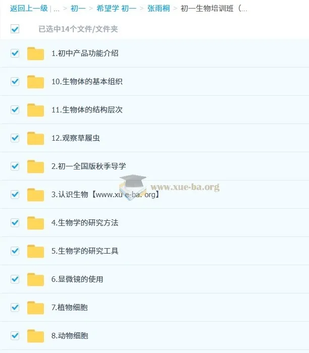 初一生物培训班(秋上·全国版·A+)-张雨桐4.22GB