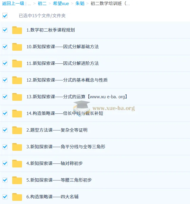 初二数学培训班(秋上·人教版·A+·专属)-朱韬6.6GB