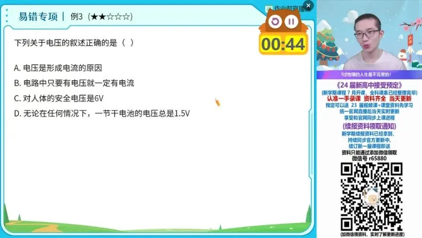 本课程由资深物理教师谭清军主讲,专为2024届初三学生设计,涵盖电荷、电流、电路、电压、电阻及欧姆定律等核心物理知识。课程包括7讲完整视频及配套讲义,每讲均配有易错题专项训练,帮助学生巩固知识点,提升解题技巧。此外,月度复习课和易错题专项训练进一步强化学习效果,确保学生在暑假期间高效备考,为中考打下坚实基础。