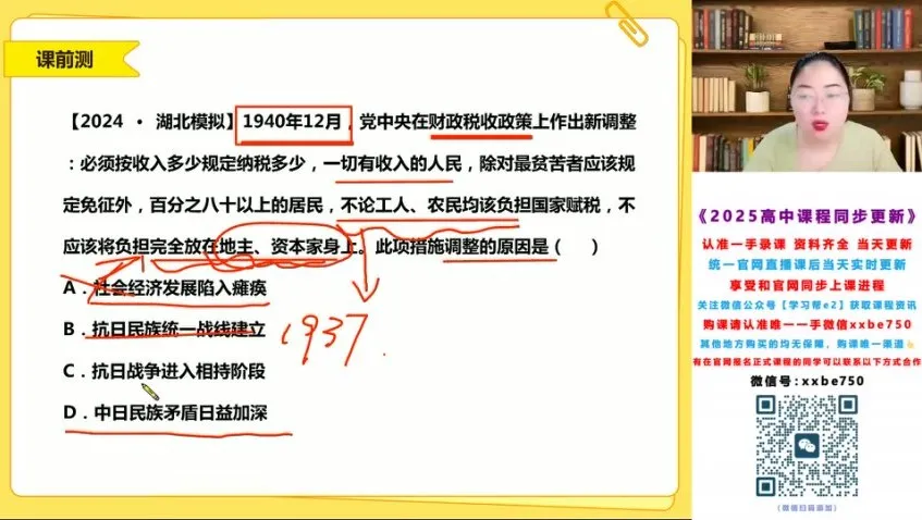 专为2025届高考生打造的历史一轮系统课程,由资深教师贾晨曦主讲。课程包含暑假预习班和秋季强化班两大模块,系统梳理中外历史脉络,突破重难点题型,融入最新高考命题趋势。暑假班侧重基础框架搭建,秋季班着重解题能力提升,配备独家历史时间轴、答题模板和真题解析,帮助考生高效掌握”时空定位””史料分析”等核心能力,为高三历史冲刺打下坚实基础。