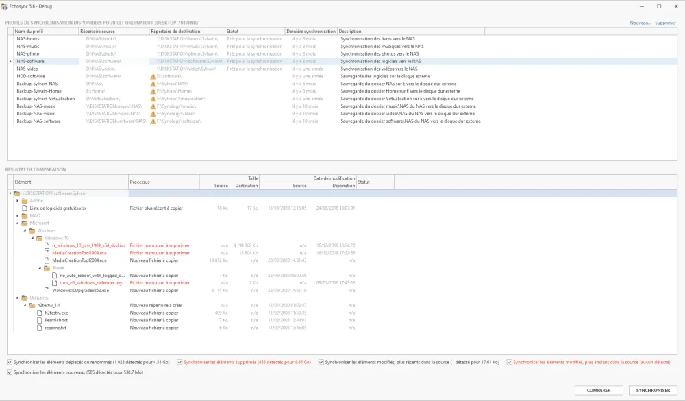 Echosync 具有用于检测重命名和/或移动的文件的算法,从而避免了删除所有这些文件然后将其复制到 Destination 目录的麻烦。