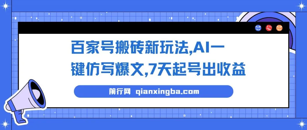 百家号搬砖新玩法,AI一键仿写爆文,7天起号出收益278.58MB