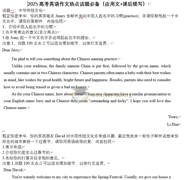 2025高考英语作文热点话题必备(应用文+读后续写)125.39KB