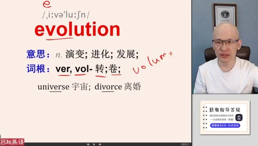 跟语言学博士吕超用科学方法高效背单词!通过120个经典例句串联4000核心词汇,配套121节高清视频课,从单词速记法到实战演练全覆盖。每节课精讲一个高频句型,同步掌握语法+词汇+地道表达,特别适合四六级/考研/雅思备考。附赠学习方法综述课,帮您建立长期记忆体系,告别死记硬背!现在学习可节省80%背单词时间,轻松突破词汇量瓶颈。...