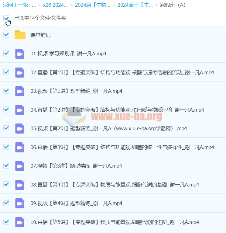 2024作业帮 生物 高三 【谢一凡】A+-百度网盘资源下载地址由网盘用户[里桑***番桑]分享,包含pdf,mp4等格式共计185个文件,文件大小为36.7GB,分享时间2024-10-29,此百度网盘资源由搜课100网盘搜索引擎收集整理。...