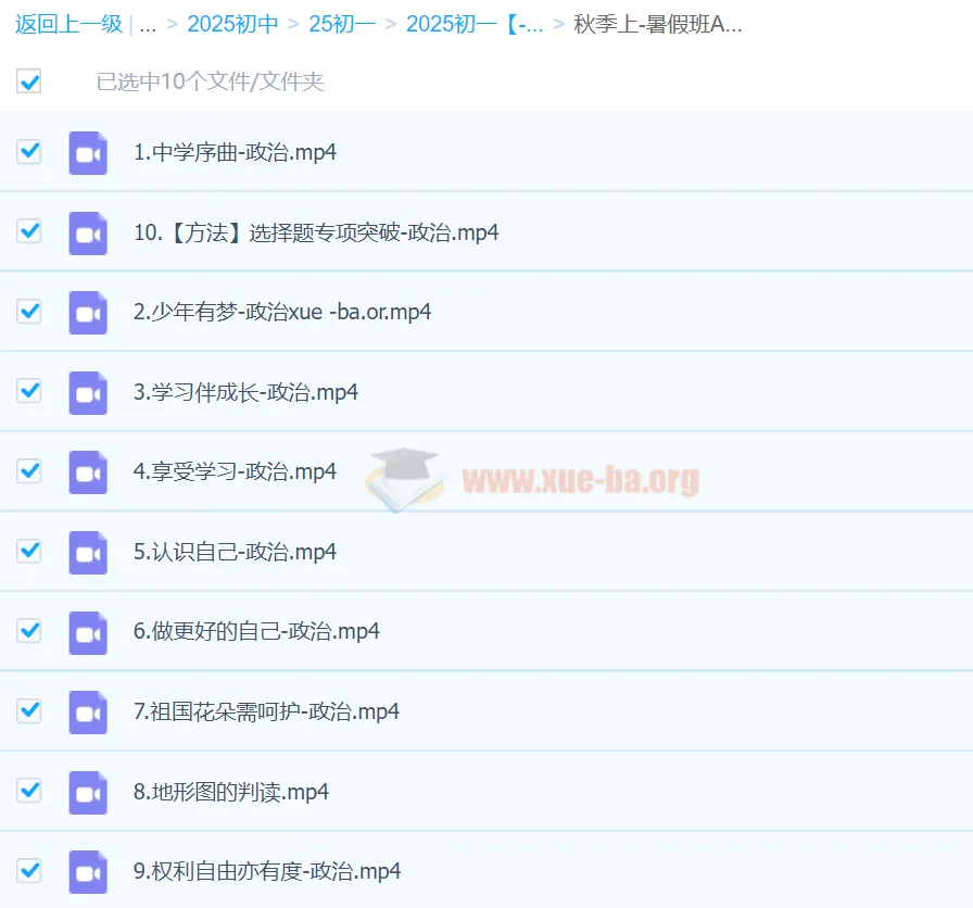 2025希望学初一【-樊帅-】-政治-百度网盘资源下载地址由网盘用户[新世***战士]分享,包含mp4等格式共计10个文件,文件大小为2.1GB,分享时间2025-03-06,此百度网盘资源由搜课100网盘搜索引擎收集整理。...