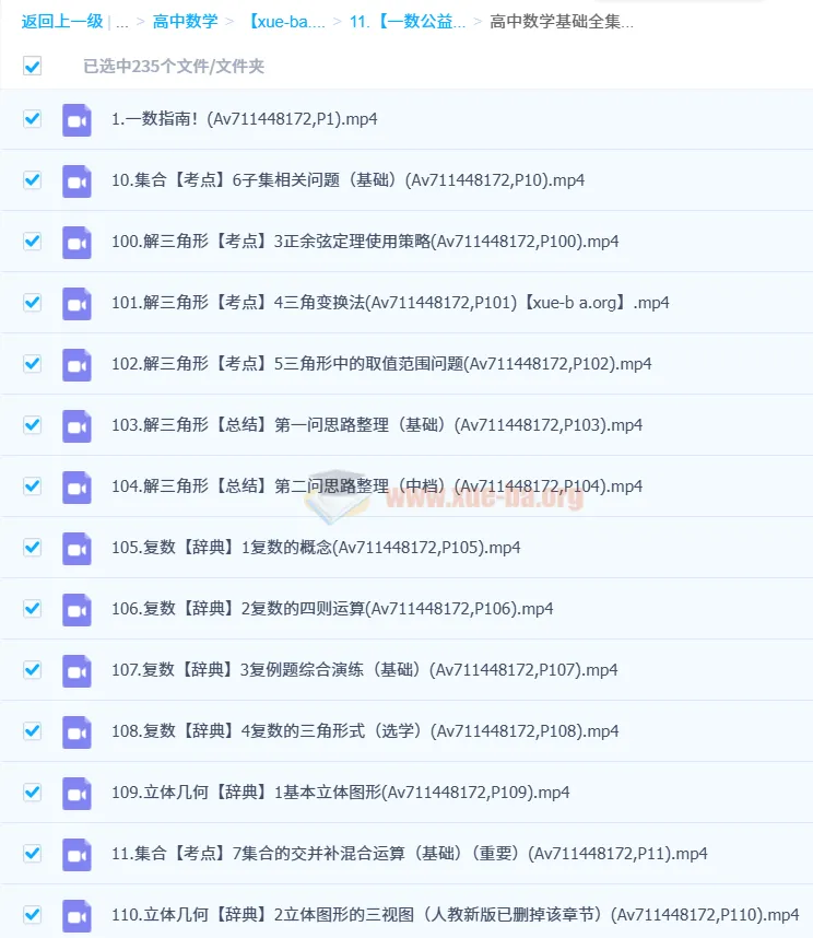 高中数学基础全集235节视频课4.06GB