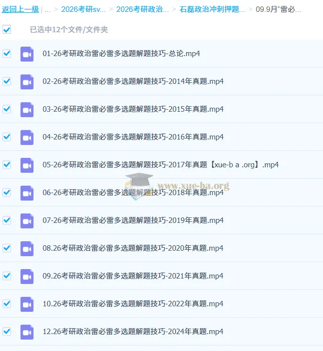 【考研】【2025考研政治】抢分政治全程班—石磊-百度网盘资源下载地址由网盘用户[风中***yyh]分享,包含mp4等格式共计52个文件,文件大小为14.75GB,分享时间2024-10-19,此百度网盘资源由搜课100网盘搜索引擎收集整理。...