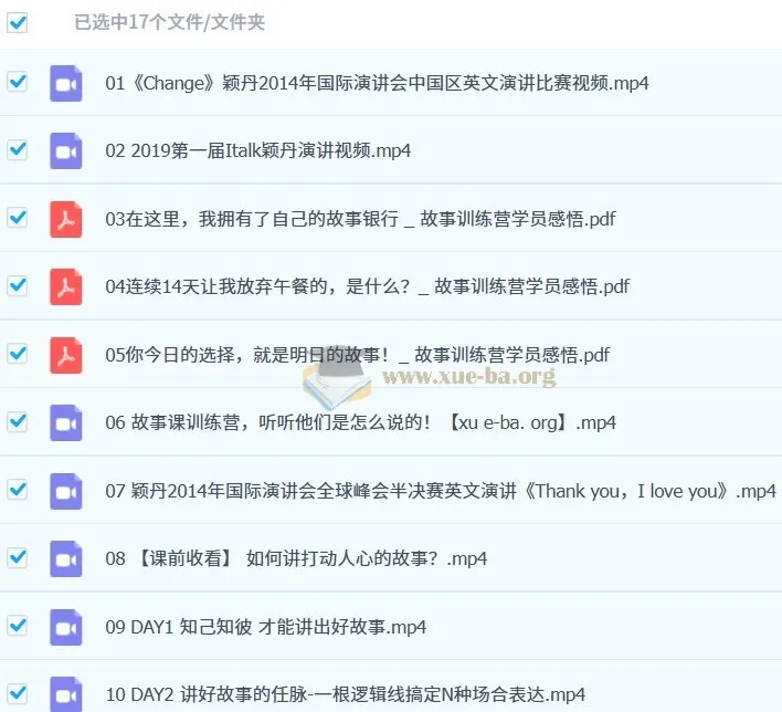 演说口才亲子训练营视频课程。 一款专门为父母和孩子打造的特色项目,旨在帮助父母和孩子了解交流表达技巧,让家长和孩子一起学习,帮助提升孩子的口才和演讲技巧,打开口才及表达的潜能。 课程设有20个小节,以游戏形式带领孩子们,通过活动、学习、实践等多种方式,让孩子们更容易掌握口才和演讲的技巧。 ├── 第1课:为什么一定要成为演说家?.ts ├── 第2课:成为演说家的核心法门是什么?.ts ├── 第3课:演说的核心和本质是什么?.ts ├── 第4课:如何让你的演说入身、入脑、入心.ts ├── 第5课:什么才是演说独到的价值观.mp4 ├── 第6课:拥有坚定的信念 - 让你的演说更有说服力.…...