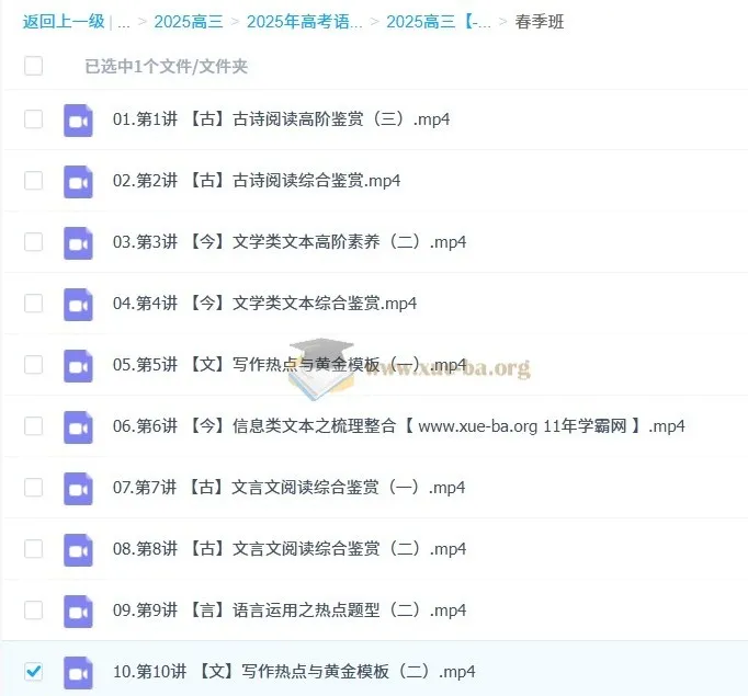高途课堂-何信 高三高考语文2025年寒假班-百度网盘资源下载地址由网盘用户[易课**04]分享,包含mp4等格式共计13个文件,文件大小为4.35GB,分享时间2025-10-11,此百度网盘资源由搜课100网盘搜索引擎收集整理。...