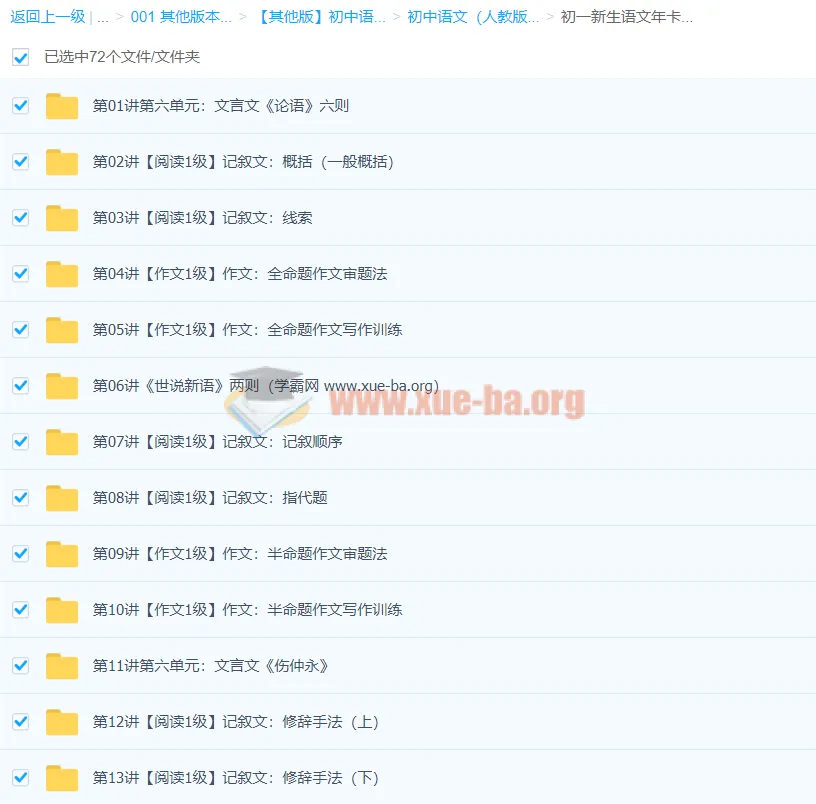 初中语文名师机构课程学而思学而思-78讲]初一新生语文年卡目标满分班(人教版)[王帆]-百度网盘资源下载地址由网盘用户[lan****ke3]分享,包含zip,z03,z02,z01等格式共计4个文件,文件大小为11.5GB,分享时间2024-10-24,此百度网盘资源由搜课100网盘搜索引擎收集整理。...