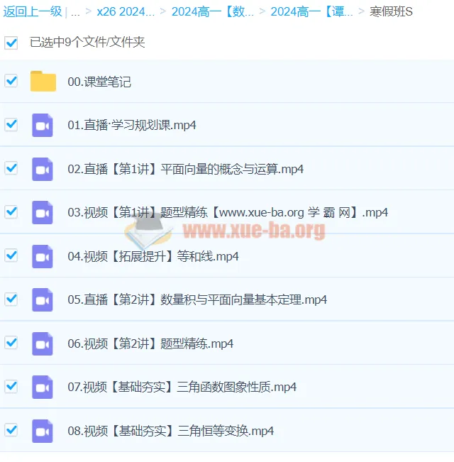 2024作业帮 数学 高一 【谭梦云】S-百度网盘资源下载地址由网盘用户[里桑***番桑]分享,包含pdf,mp4等格式共计173个文件,文件大小为30.06GB,分享时间2024-10-30,此百度网盘资源由搜课100网盘搜索引擎收集整理。...