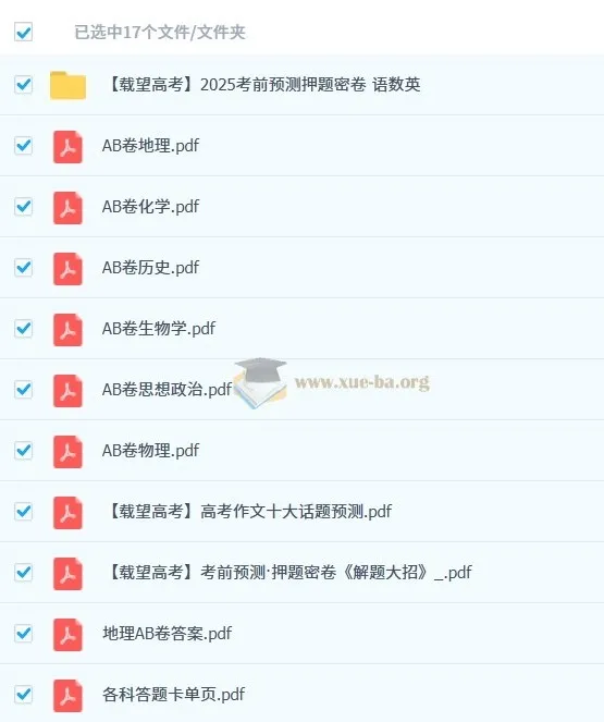 高中全科《载望高考•预测押题密卷》2025版-夸克网盘资源下载地址由网盘用户[轻巧*儒艮]分享,包含pdf等格式共计18个文件,文件大小为884.36MB,分享时间2025-10-19,此夸克网盘资源由搜课100网盘搜索引擎收集整理。...