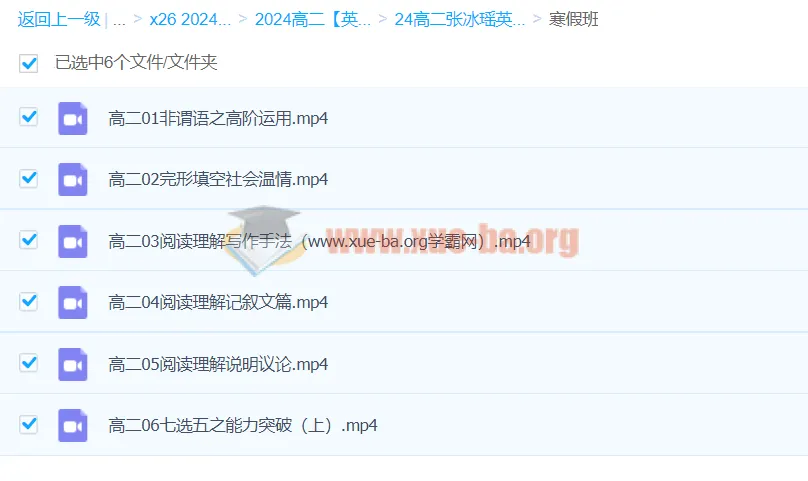 本课程为2024年最新版高二英语春季班,由名师张冰瑶系统讲授。课程包含15节精品视频,涵盖独立主格、非谓语、完形填空、阅读理解(科技/人文/环境)、七选五、语法填空、发言演讲写作及读后续写等核心考点。配套多平台观看教程和最新播放器下载指南,帮助学生高效提升英语应试能力。特别针对高考常见题型进行方法梳理和避坑指导,是高二学生备战高考的必备优质学习资源。...