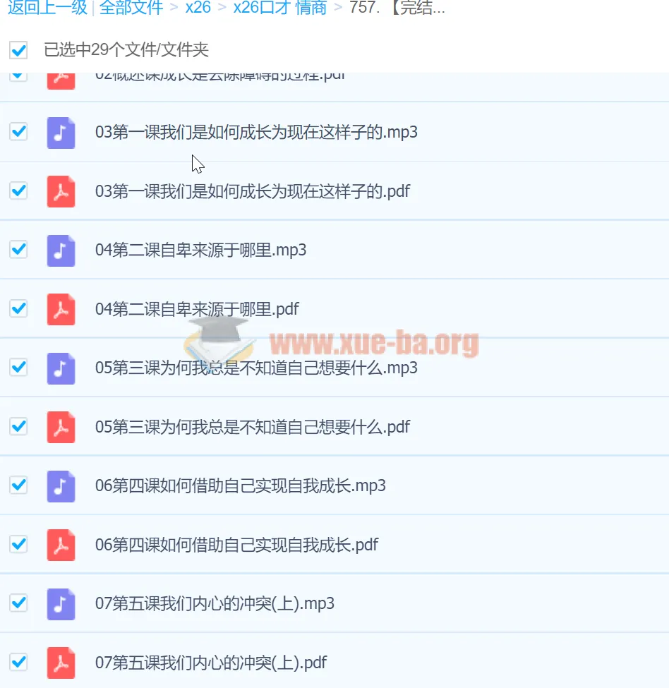 樊登读书会|樊登智行学院—32-樊登:做有益于孩子成长的父母(完结)-百度网盘资源下载地址由网盘用户[lan****ke3]分享,包含mp3,jpg等格式共计64个文件,文件大小为127.99MB,分享时间2024-11-02,此百度网盘资源由搜课100网盘搜索引擎收集整理。...
