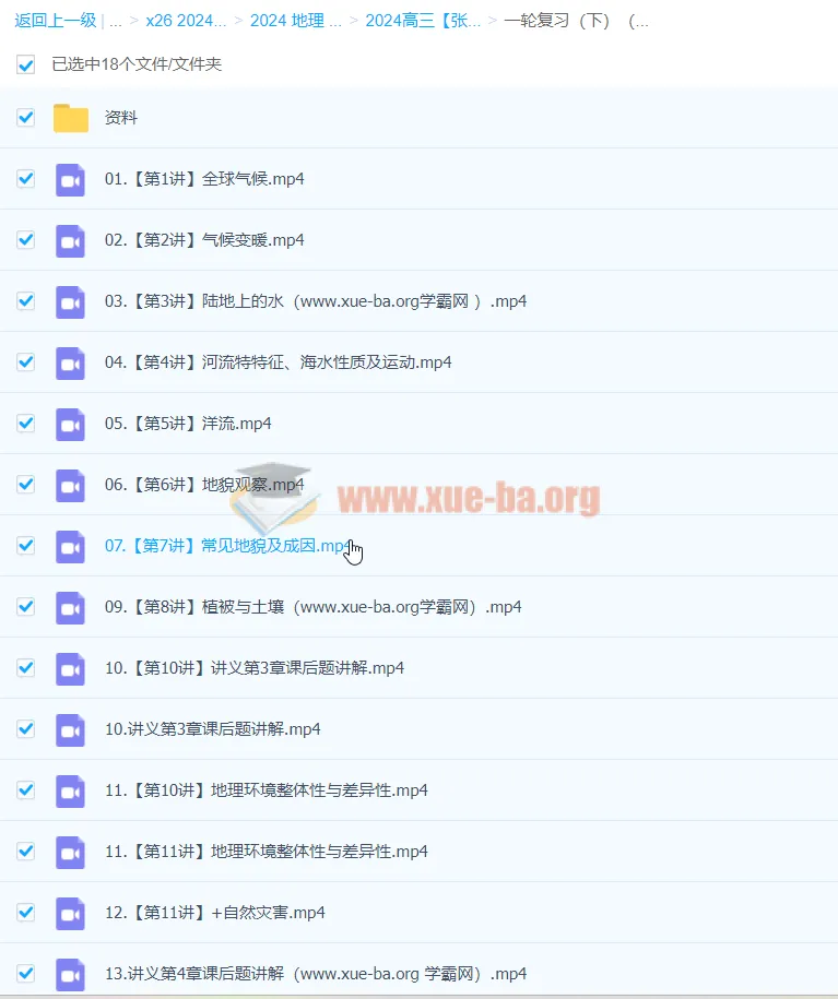 2026届高三高考地理 张艳平一轮复习课程-百度网盘资源下载地址由网盘用户[gua****8805]分享,包含pdf,mp4,url等格式共计62个文件,文件大小为17.67GB,分享时间2025-09-22,此百度网盘资源由搜课100网盘搜索引擎收集整理。...