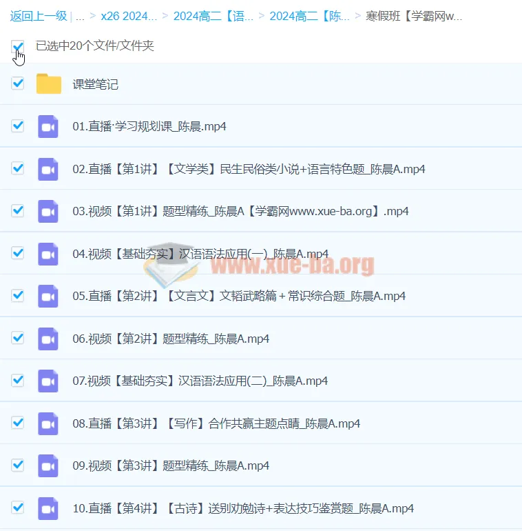 2024作业帮 语文 高二 【陈晨】A-百度网盘资源下载地址由网盘用户[里桑***番桑]分享,包含pdf,mp4等格式共计57个文件,文件大小为10.03GB,分享时间2024-10-31,此百度网盘资源由搜课100网盘搜索引擎收集整理。...