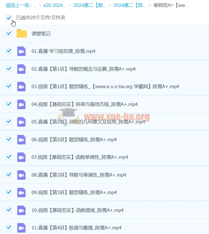 2024作业帮 数学 高二 【陈雪】A-百度网盘资源下载地址由网盘用户[里桑***番桑]分享,包含pdf,mp4等格式共计63个文件,文件大小为8.94GB,分享时间2024-10-29,此百度网盘资源由搜课100网盘搜索引擎收集整理。...