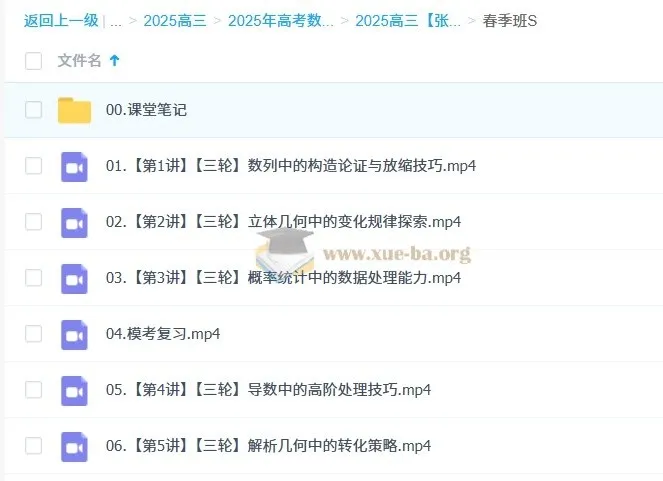 本资料包含2025届高三数学张华老师S班完整课程体系,涵盖一轮复习、二轮冲刺(寒假班+春季班)及高考密训班三大模块。课程由作业帮顶级名师张华主讲,内含最新高考密训卷精讲、重难点突破技巧及S班专属提分秘籍。适合目标985/211的高三学子系统复习,助你掌握高考数学命题规律,快速提升解题速度与准确率。资料包含暑假班、秋季班至考前密训的全套视频,是冲刺高分的必备宝典!...