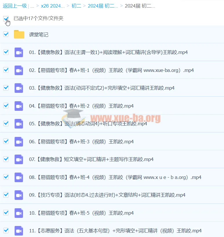 2024届 初二 人教 英语 培训班(王凯娇)A+寒假班7.97GB