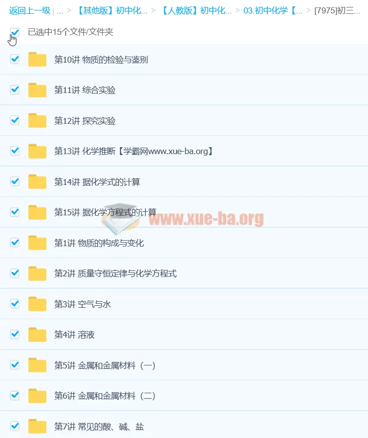 初中化学名师机构课程学而思【18483=18771】初三化学中考总复习(通用版)【18讲 陈谭飞】-百度网盘资源下载地址由网盘用户[lan****ke3]分享,包含pdf,mp4,PDF等格式共计74个文件,文件大小为3.26GB,分享时间2024-10-24,此百度网盘资源由搜课100网盘搜索引擎收集整理。...