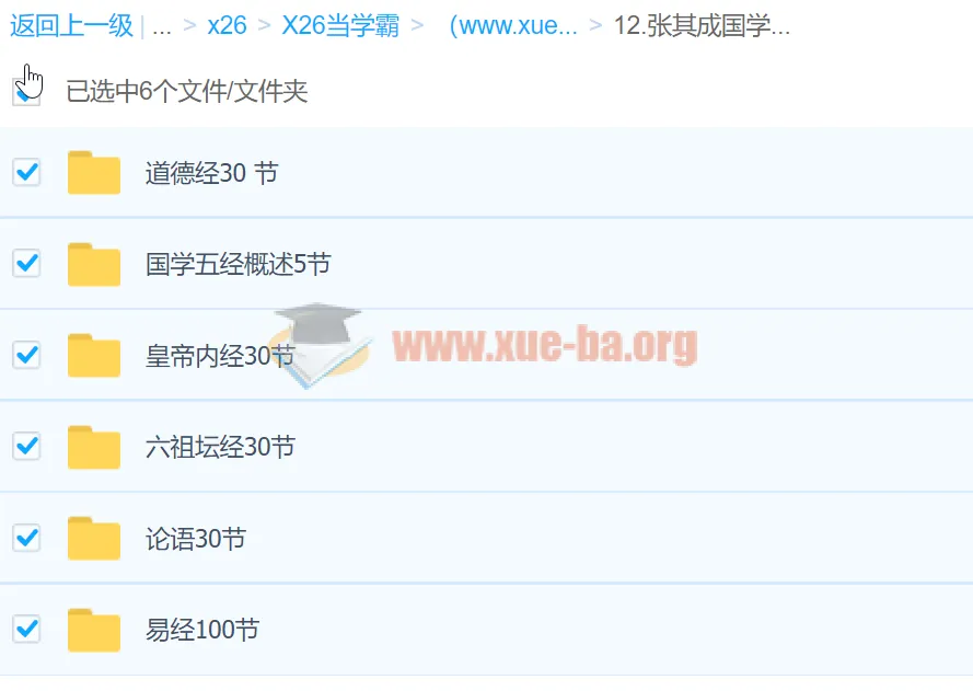 张其成国学五经6套。 张其成国学五经6套包括:《周易》、《论语》、《道德经》、《六祖坛经》及《六祖坛经》的全解或相关著作。这五部经典被张其成教授视为国学精髓,分别代表易学、儒学、道学、佛学和医学的核心。通过深入浅出的解读,帮助读者理解古代圣贤的智慧,提升个人修养,实现心灵的安宁与和谐。 ├── 六祖坛经30节 ├── 道德经30 节 ├── 国学五经概述5节 ├── 黄帝内经30节 ├── 论语30节 ├── 易经100节...