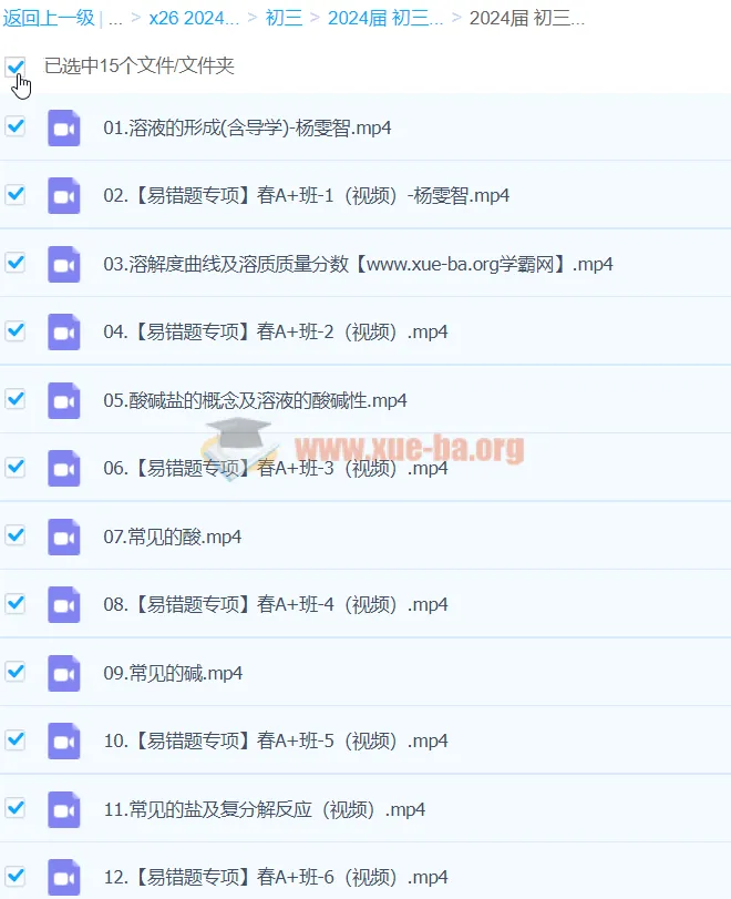 2024届 初三 人教 化学 培训班(杨雯智)S 寒假班3.64GB