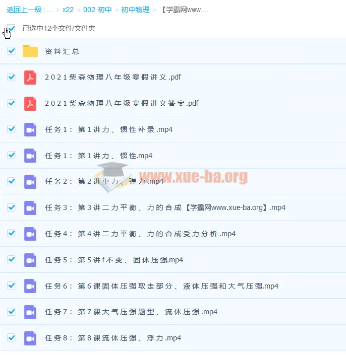 2021年柴森八年级物理寒假班(初二物理)8讲完结2.76G高清视频 百度网盘分享2.81GB