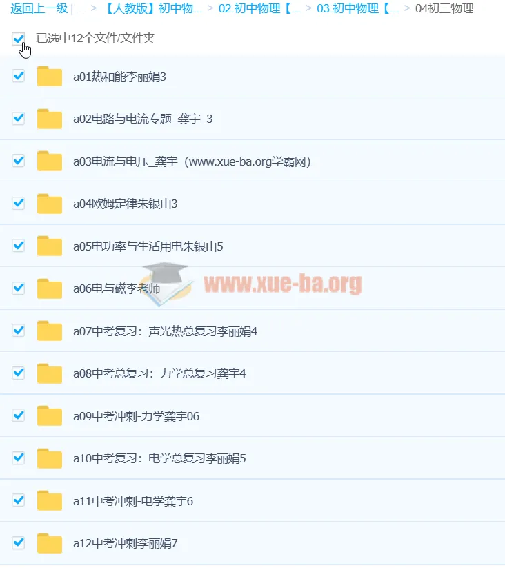 初中物理名师合集课程多个老师合集高途课堂 郭志强物理 2020初三物理秋季系统班(带讲义-百度网盘资源下载地址由网盘用户[lan****ke3]分享,包含url,mp4,txt,pdf,PDF等格式共计22个文件,文件大小为3.77GB,分享时间2024-10-24,此百度网盘资源由搜课100网盘搜索引擎收集整理。...