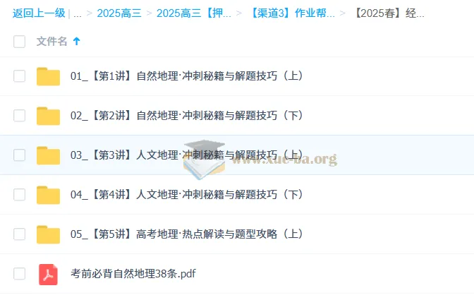 2025高三地理【孙国勇】-密训班-百度网盘资源下载地址由网盘用户[新世***战士]分享,包含pdf,mp4等格式共计16个文件,文件大小为3.08GB,分享时间2025-08-28,此百度网盘资源由搜课100网盘搜索引擎收集整理。...