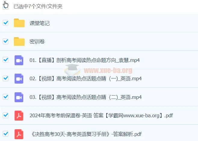 本课程由高考英语名师袁慧精心打造,聚焦2024年高考英语三大核心题型:阅读理解、完形填空和七选五。课程包含12节高清视频课+配套笔记,深度剖析命题趋势,传授快速解题技巧。通过热点话题点睛、命题套路解密和考场实战演练,帮助学生掌握阅读定位技巧、完形上下文逻辑分析、七选五关键词匹配等核心能力。附赠最新高考写作趋势分析和快速构思方法,适合想在短期内突破英语高分瓶颈的考生。...