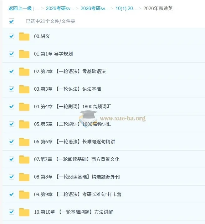 【2026考研英语】高途英语全程班【李旭等】-百度网盘资源下载地址由网盘用户[卷卷**泡菜]分享,包含mp4等格式共计89个文件,文件大小为8.71GB,分享时间2024-12-12,此百度网盘资源由搜课100网盘搜索引擎收集整理。...