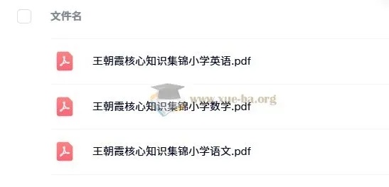 2023年王朝霞小学语文数学英语核心知识集锦。 ├── 王朝霞-小学数学核心知识集锦.pdf ├── 王朝霞-小学语文核心知识集锦.pdf ├── 王朝霞-小学英语核心知识集锦.pdf...