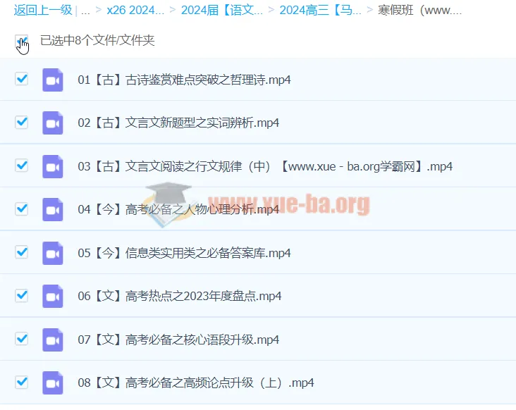 本套资料由高考语文名师马一鸣精心编写,涵盖高三全年语文复习内容。包含秋季班、寒假班、春季班完整课程,系统讲解文言文断句、诗歌鉴赏、论述类文本阅读、高考作文提升等核心考点。特别针对2024高考新题型设计专项训练,如文学类短评、语用新题型等。资料内含高清视频课程、PDF笔记、高频考点总结和答题技巧,助您掌握高考语文命题规律,快速提升阅读和写作能力。适合高三学生全程复习使用,是冲刺高分必备的语文备考资料。...