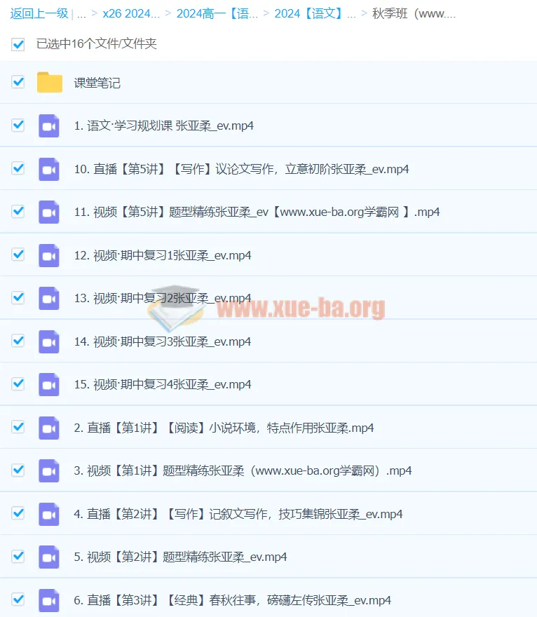2024高中语文 高一张亚柔语文 秋季班 更新中