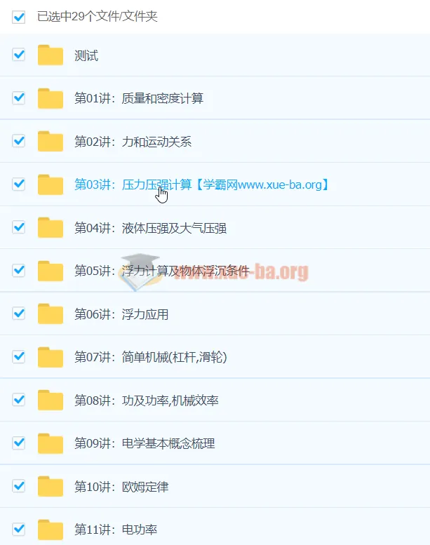 初中物理名师合集课程杜春雨-【25476】2016年中考一、二轮复习物理联报班(满分班)【28讲 杜春雨】-百度网盘资源下载地址由网盘用户[lan****ke3]分享,包含pdf,mp4,docx,PDF等格式共计129个文件,文件大小为3.57GB,分享时间2024-10-24,此百度网盘资源由搜课100网盘搜索引擎收集整理。...