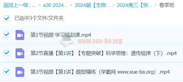 本课程由资深生物教师张元振主讲,涵盖高三生物全部核心考点。课程包含秋季班、寒假班、春季班三阶段系统教学,重点突破遗传定律、细胞分裂、光合呼吸、稳态调节等难点。提供配套课堂笔记和题型精练视频,帮助学生掌握分离定律、自由组合定律解题技巧,理解伴性遗传规律,构建生态系统的知识体系。适合2024届高考生系统复习使用,通过专题突破+新题型训练,快速提升生物成绩。...