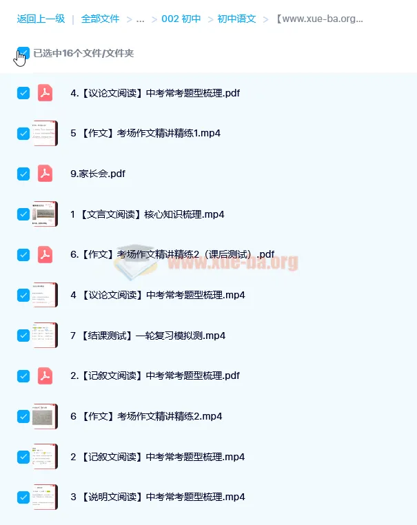 初中语文名师机构课程作业帮作业帮【寒】三位一体:中考语文读写满分班(何铮铮)-百度网盘资源下载地址由网盘用户[lan****ke3]分享,包含pdf,mp4等格式共计16个文件,文件大小为4.83GB,分享时间2024-10-23,此百度网盘资源由搜课100网盘搜索引擎收集整理。...