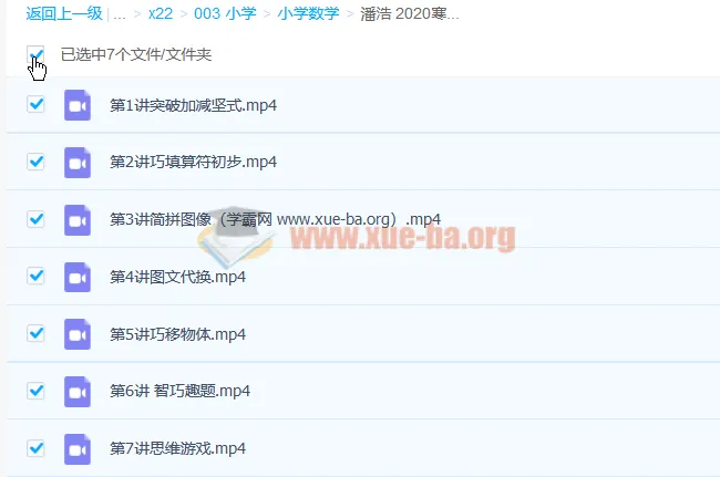 潘浩 2020寒假 小学一年级数学寒假班 7讲1.34GB