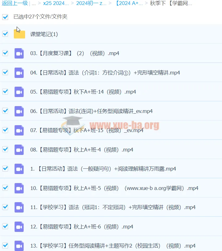 2024届作业帮 初一 人教 英语 培训班(万雨露)A+秋季班-百度网盘资源下载地址由网盘用户[里桑***番桑]分享,包含pdf,mp4等格式共计72个文件,文件大小为11.42GB,分享时间2024-10-23,此百度网盘资源由搜课100网盘搜索引擎收集整理。...