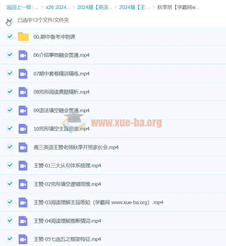 王赞老师2024届高三英语系统课程,涵盖语法、完形、阅读、七选五及写作全题型。春季班聚焦最新高考真题解析与T8联考训练,寒假班强化模考高频考点,秋季班系统梳理三大从句与读后续写技巧,暑假班夯实动词体系与完形思维。30+小时高清视频,配备模考汇编、错题精析和写作模板,助学生掌握命题规律,实现英语120+突破。适合二轮复习及考前冲刺,直击高考英语提分痛点!...