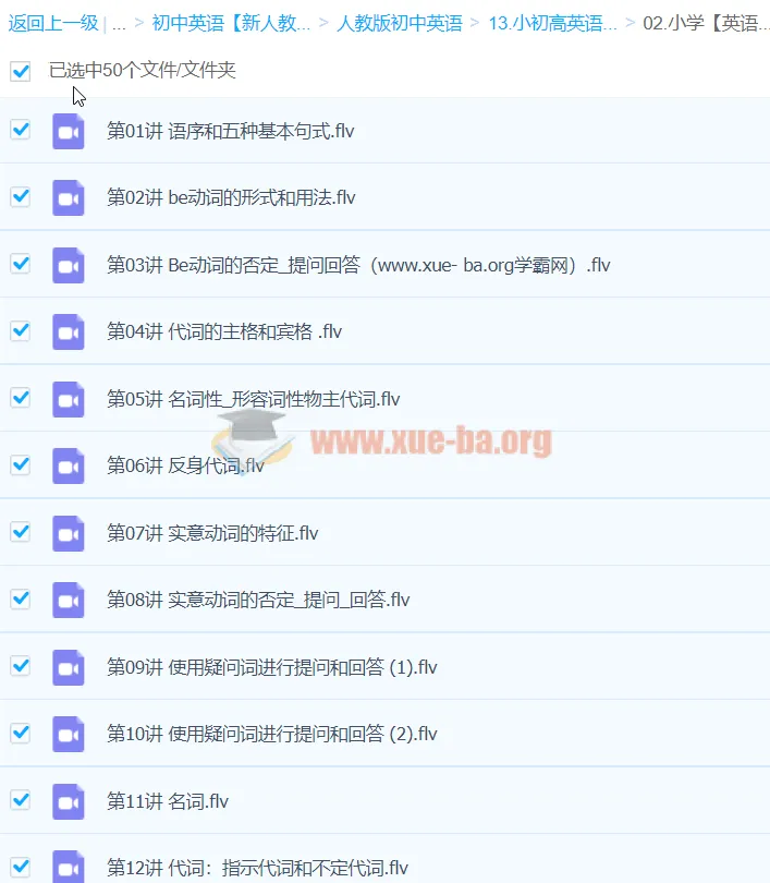 02.小学【英语语法入门】50课视频讲解 flv853.9MB