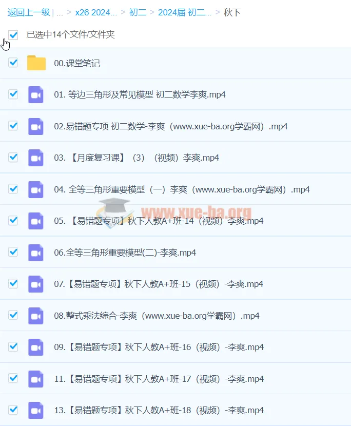 2024届 初二 人教 数学 培训班(李爽)A+秋季班 下4.62GB