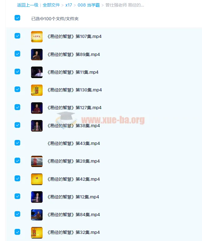 樊登读书会|樊登智行学院—78-曾仕强《曾仕强易经的智慧全集》(完结)-百度网盘资源下载地址由网盘用户[lan****ke3]分享,包含PDF,mp3,jpg等格式共计100个文件,文件大小为325.47MB,分享时间2024-11-02,此百度网盘资源由搜课100网盘搜索引擎收集整理。...