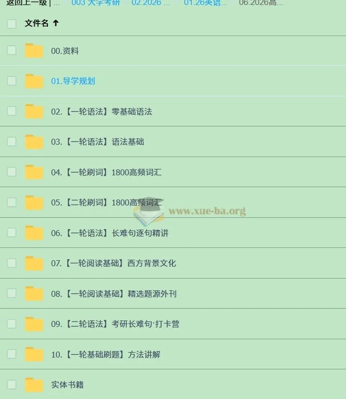 【2026考研英语】高途英语全程班【李旭等】-百度网盘资源下载地址由网盘用户[卷卷**泡菜]分享,包含mp4等格式共计89个文件,文件大小为8.71GB,分享时间2024-12-12,此百度网盘资源由搜课100网盘搜索引擎收集整理。...