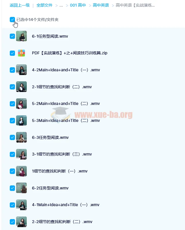 高中英语技巧提升全年级辅导高中英语课程-百度网盘资源下载地址由网盘用户[gus****i90]分享,包含pdf,txt,PDF,wmv等格式共计328个文件,文件大小为17.35GB,分享时间2024-10-24,此百度网盘资源由搜课100网盘搜索引擎收集整理。...