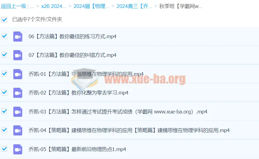 2024高三高考物理 乔凯物理 秋季班 更新中