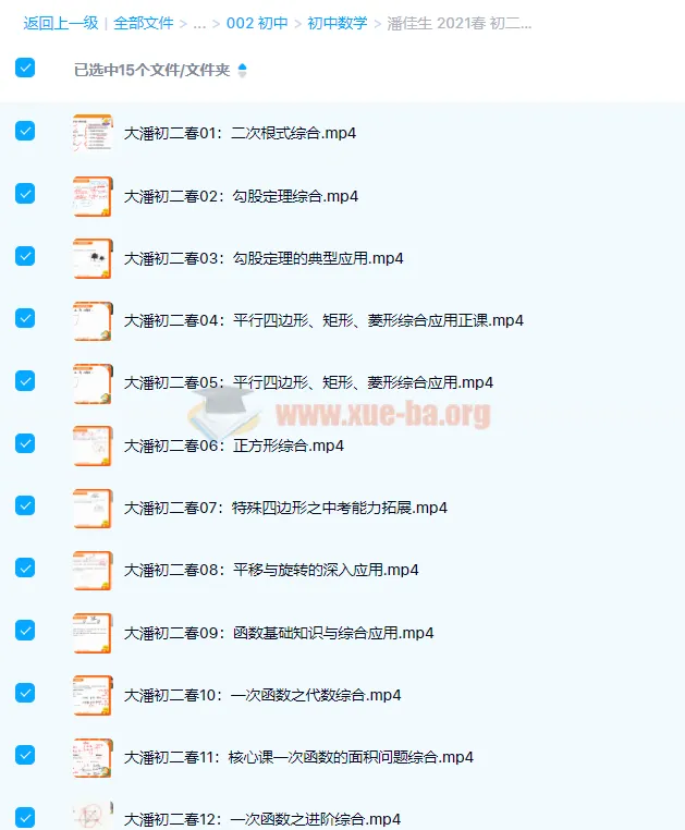 潘佳生 2021春 初二数学春季班 15讲完结14.23GB