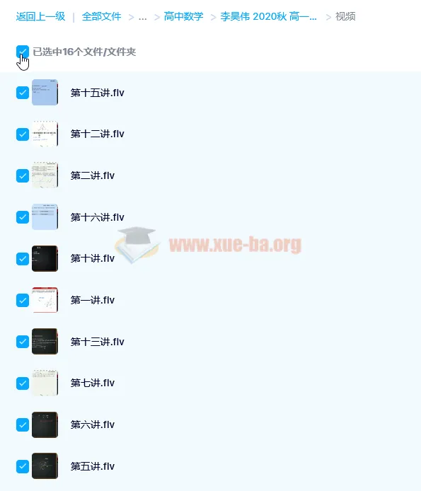 高中数学课外辅导高一辅导班2021高一寒假数学强基,李昊伟-百度网盘资源下载地址由网盘用户[gus****i90]分享,包含pdf,PDF,mp4等格式共计10个文件,文件大小为11.9GB,分享时间2024-10-25,此百度网盘资源由搜课100网盘搜索引擎收集整理。...
