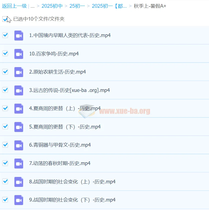 2025希望学初一【都运欢】-历史-百度网盘资源下载地址由网盘用户[新世***战士]分享,包含mp4等格式共计10个文件,文件大小为2.68GB,分享时间2025-03-09,此百度网盘资源由搜课100网盘搜索引擎收集整理。...